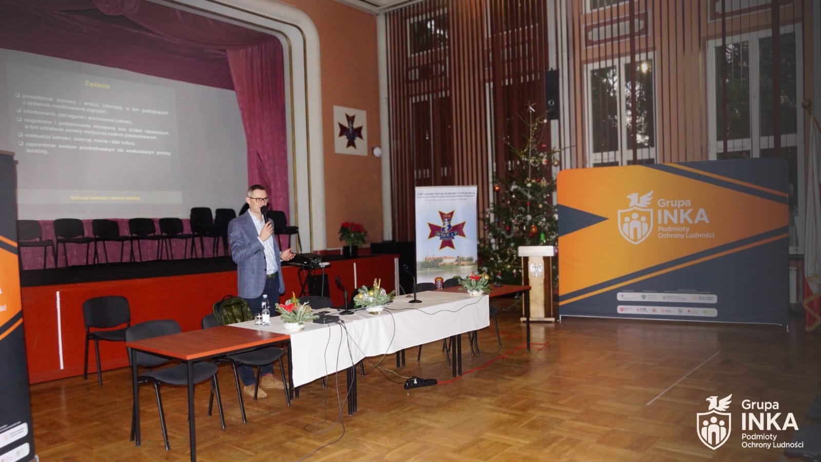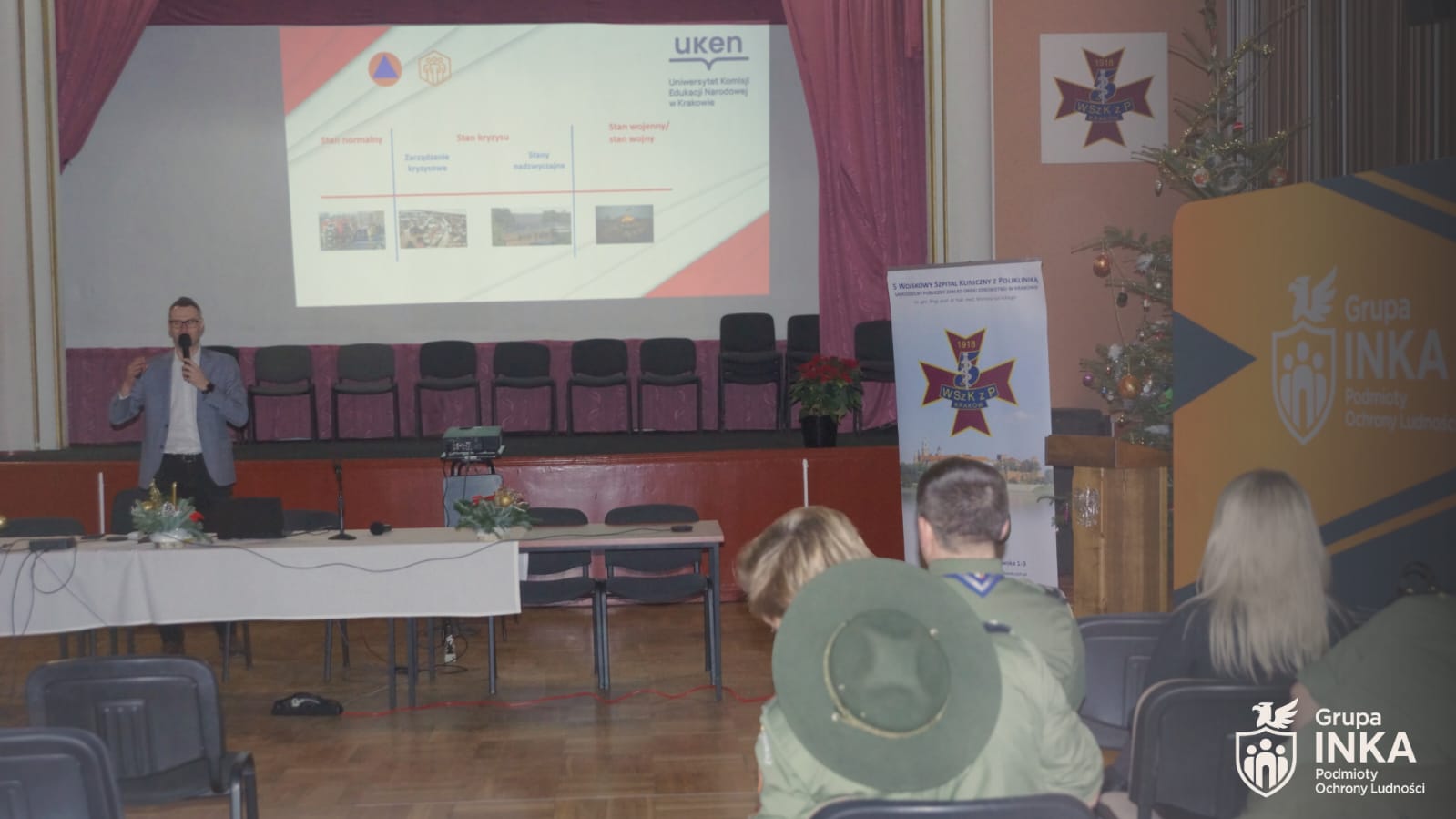W dniach 19 i 20 grudnia 2025 r. pod patronatem honorowym Wojewody Małopolskiego przy współpracy Fundacji Dobroczynności Lekarskiej oraz Instytutu Nauk o Zdrowiu Uniwersytetu Komisji Edukacji Narodowej w Krakowie zrealizowano projekt pn. „Budowa odporności społecznej poprzez realizację szkoleniowego programu dedykowanego dla pracowników Podmiotów Ochrony Ludności, ukierunkowanego na wzmocnienie kompetencji, podniesienie gotowości organizacyjnej oraz doskonalenie procedur postępowania w sytuacjach kryzysowych”. Realizacja tego zadania stanowi istotny etap wdrażania rozwiązań przewidzianych w Programie Ochrony Ludności i Obrony Cywilnej na lata 2025 – 2026 i służy praktycznemu wsparciu wykonywania zadań koordynacyjnych systemu ochrony ludności w województwie.